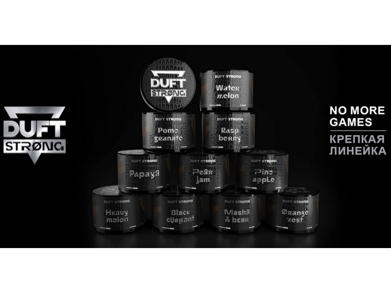 Дафт Тобако выпуслила новую линейку Duft Strong. Сорт табачного листа – бразильский сорт Diamantina, выращенный в Италии по эксклюзивной особой тепличной технологии, которая делает табак максимально насыщенным никотином и держит под контролем излишнюю ароматичность листа.